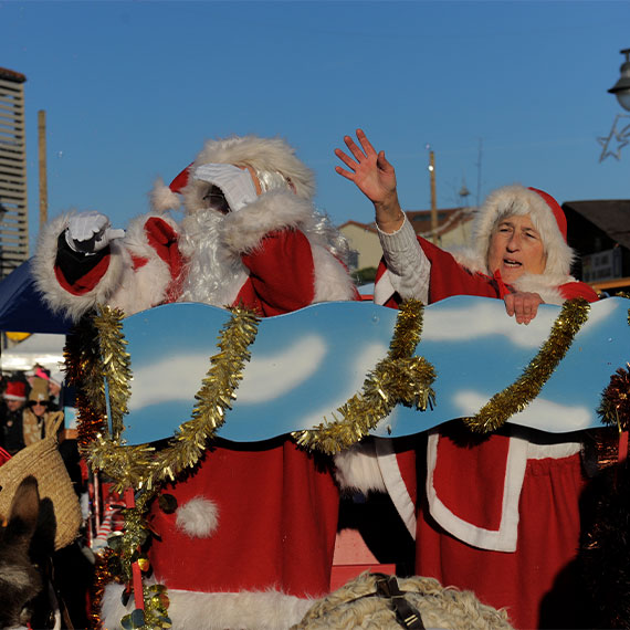 Installé aux côtés de sa charmante Mère Noël, l’illustre bonhomme barbu déambulera dans le village pour une belle et grande distribution de papillotes. Il emmènera dans son sillon une foule d’amis à lui comme ses fidèles lutins, les Toons au complet, les sculpteurs de ballons, les danseurs, musiciens…